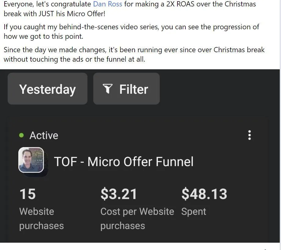After personally running ad campaigns that have scaled up to $5K/day in Micro Offer sales by myself...