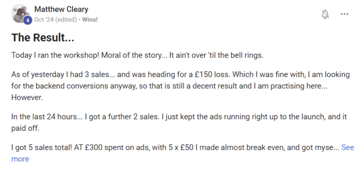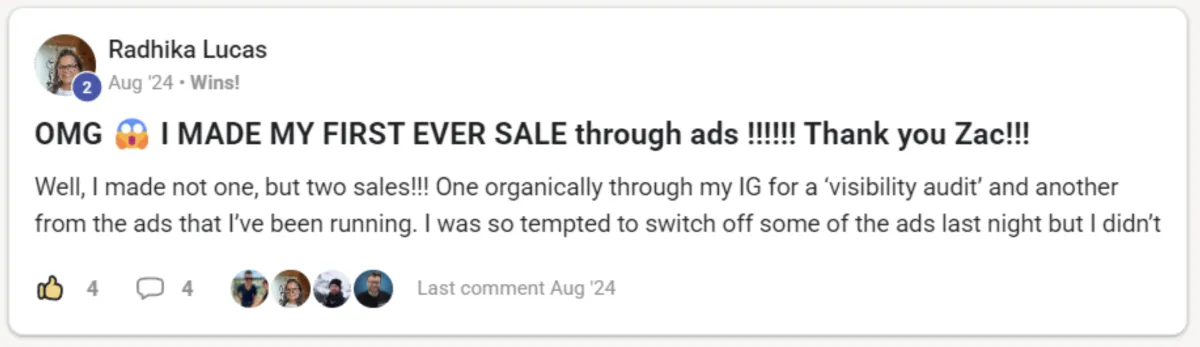 It’s all because I’m using Evergreen Ads that allow me to get out of the ads manager and make sales day after day. And I’m not the only one…